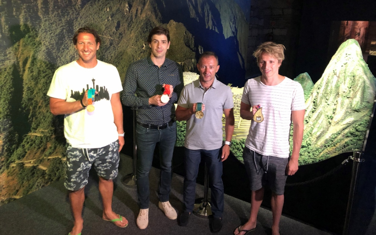 A négy olimpikon meglepetésvendégként csatlakozott a gyerekcsapathoz, akik a kiállítás megnézése után kisebb egy kisebb ajándékcsomagot is kaptak.