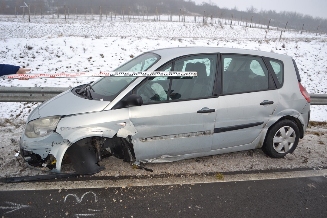 Egy 29 éves nő 2019. január 27-én 9 óra 30 perc körül Renault típusú személygépkocsijával közlekedett a 21-es számú főúton, Hatvan irányából Salgótarján felé. Haladása során, egy enyhén jobbra ívelő útkanyarulatban a nedves úttesten az autóval megcsúszott és először a bal oldali szalagkorlátnak ütközött, majd onnan a jobb oldali szalagkorlátnak csapódott. A balesetben a jármű vezetője könnyebben sérült.