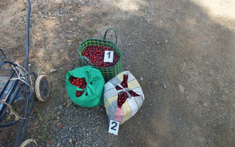 A Balassagyarmati Rendőrkapitányság járőrei a helyszínről a 43 éves helyi lakos nőt és társát, egy 38 éves herencsényi férfit a rendőrkapitányságra előállították. A jelenleg rendelkezésre álló adatok alapján V. Jánosné és V. Tibor a gyümölcsfákról 30 kg cseresznyét szedett le, amit szatyrokba rakva, egy régi babakocsival akartak lakásukra szállítani.