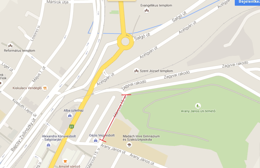 Salgótarjánban a régi köztemetőhöz vezető Március 15. utat az Arany János út kereszteződésétől lezárják.