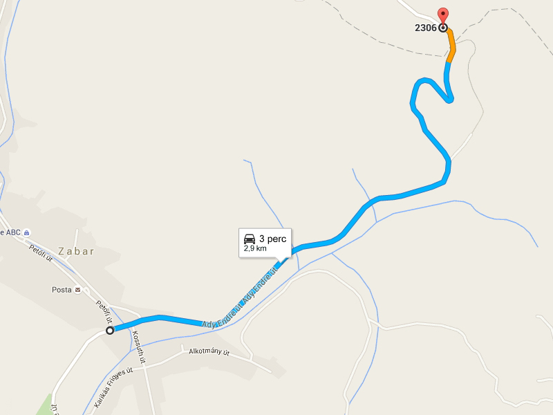 - 2016. április 24-én 7 óra 30 perctől 17 óra 30 percig, a 2306-os számú utat Zabar (Nógrád megye) irányából 1+100-as kilométerszelvénytől a Domaháza irányába (Borsod-Abaúj-Zemplén megye) 3+905-ös kilométerszelvényéig.