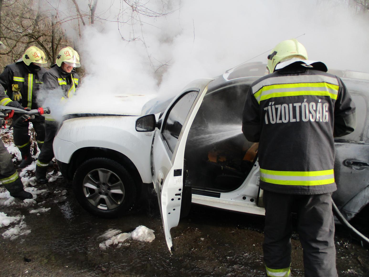 A salgótarjáni hivatásos tűzoltók percek alatt a helyszínre értek és azonnal megkezdték a lángok megfékezését több vízsugárral. A tűz menet közben keletkezett a gépjárműben, amelyben csak a sofőr utazott, aki azonnal elhagyta a kocsit, így nem sérült meg. A tűzoltás idején félpályán haladt a forgalom az érintett útszakaszon.