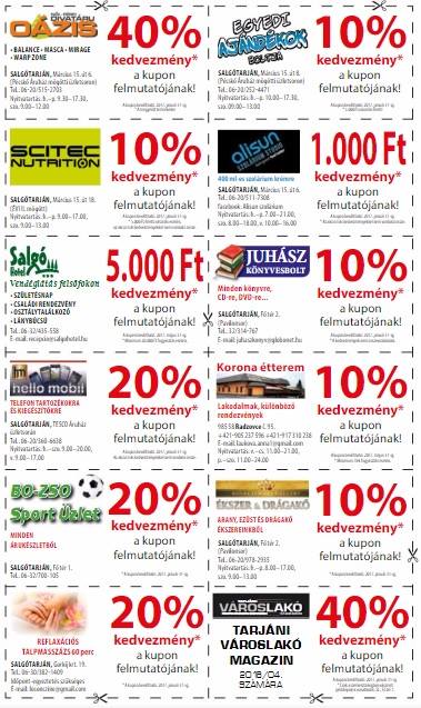 Felhasználhatóságuk és a kedvezmény mértéke kupononként változó.