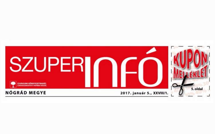 A Nógrád Megyei Szuperinfó 2017. első száma kuponmelléklettel jelent meg.