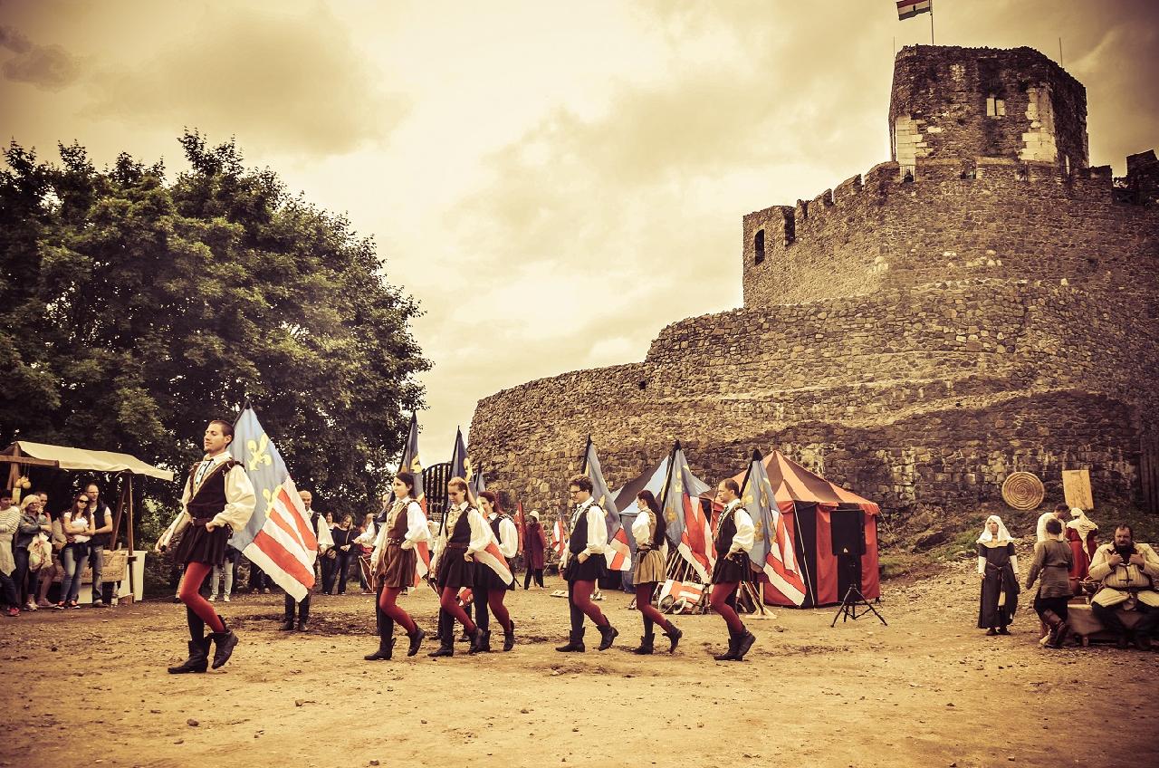 13.30: Pavane zászlóforgatók a templom előtt (bemutató) és onnan való vonulásuk a parkolón át (bemutató) a várhoz