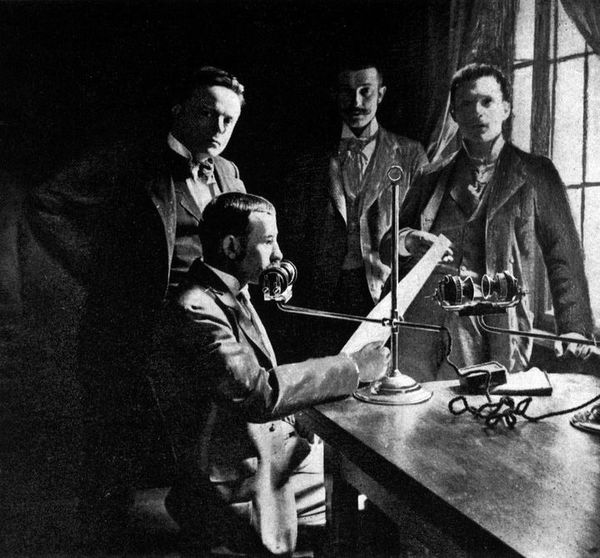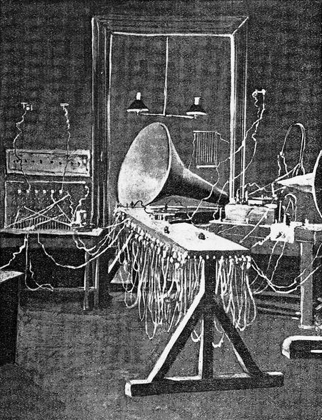 - A telefonhírmondó egyik munkatársa felolvasás közben (1901)