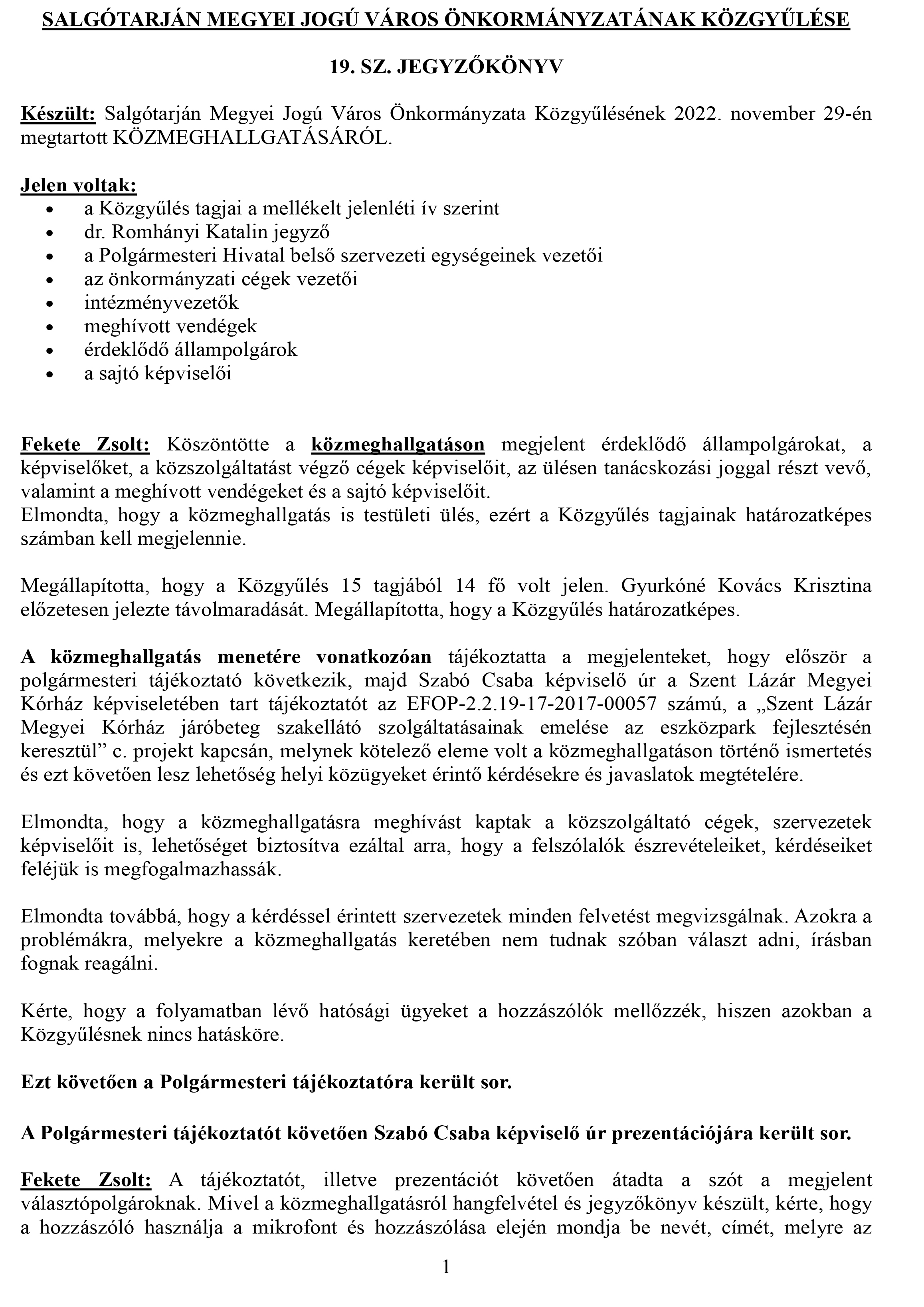 Készült: Salgótarján Megyei Jogú Város Önkormányzata Közgyűlésének 2022. november 29-én megtartott KÖZMEGHALLGATÁSÁRÓL. Videó és kép melléklet
