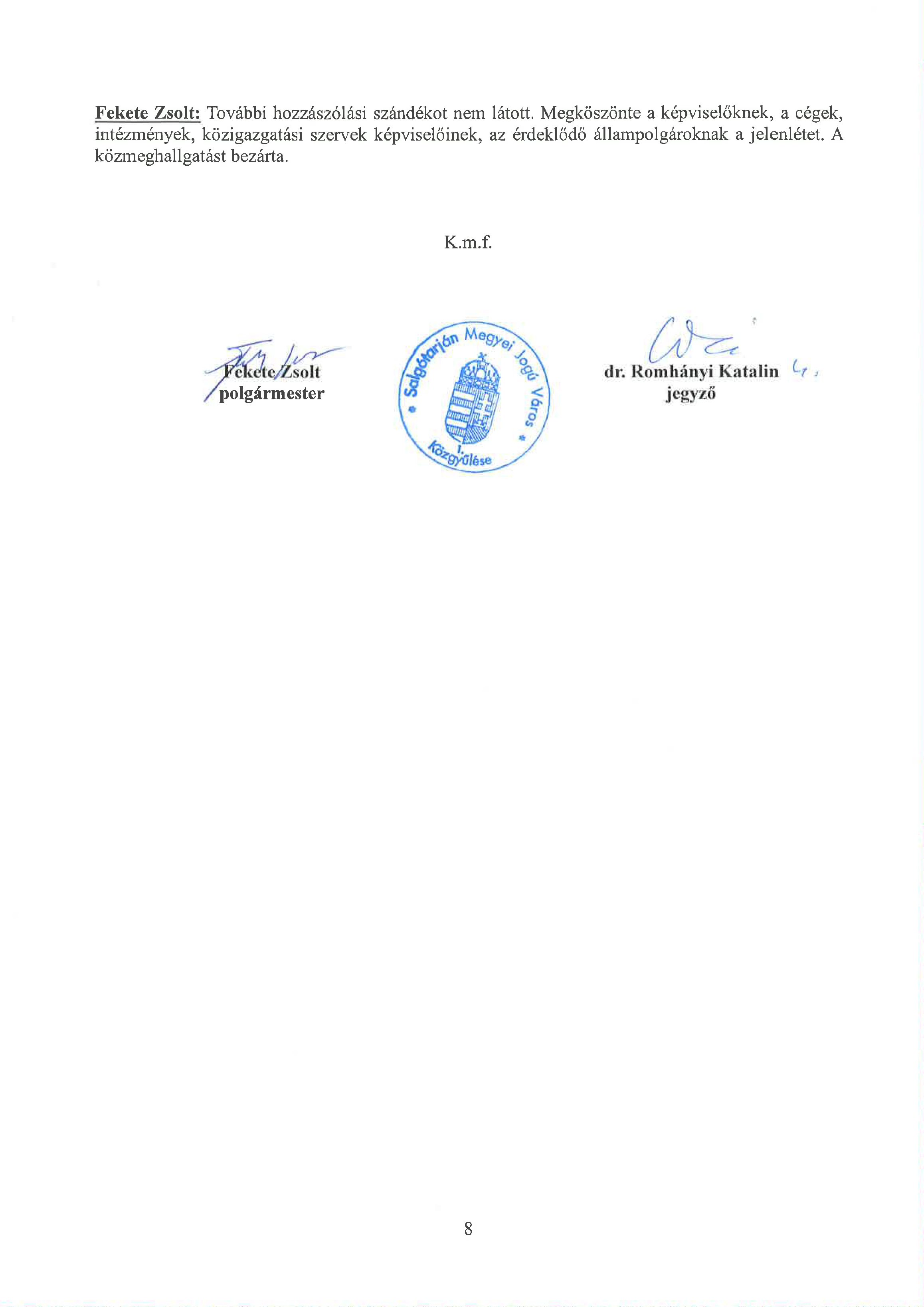 a Közgyűlés tagjai a mellékelt jelenléti ív szerint